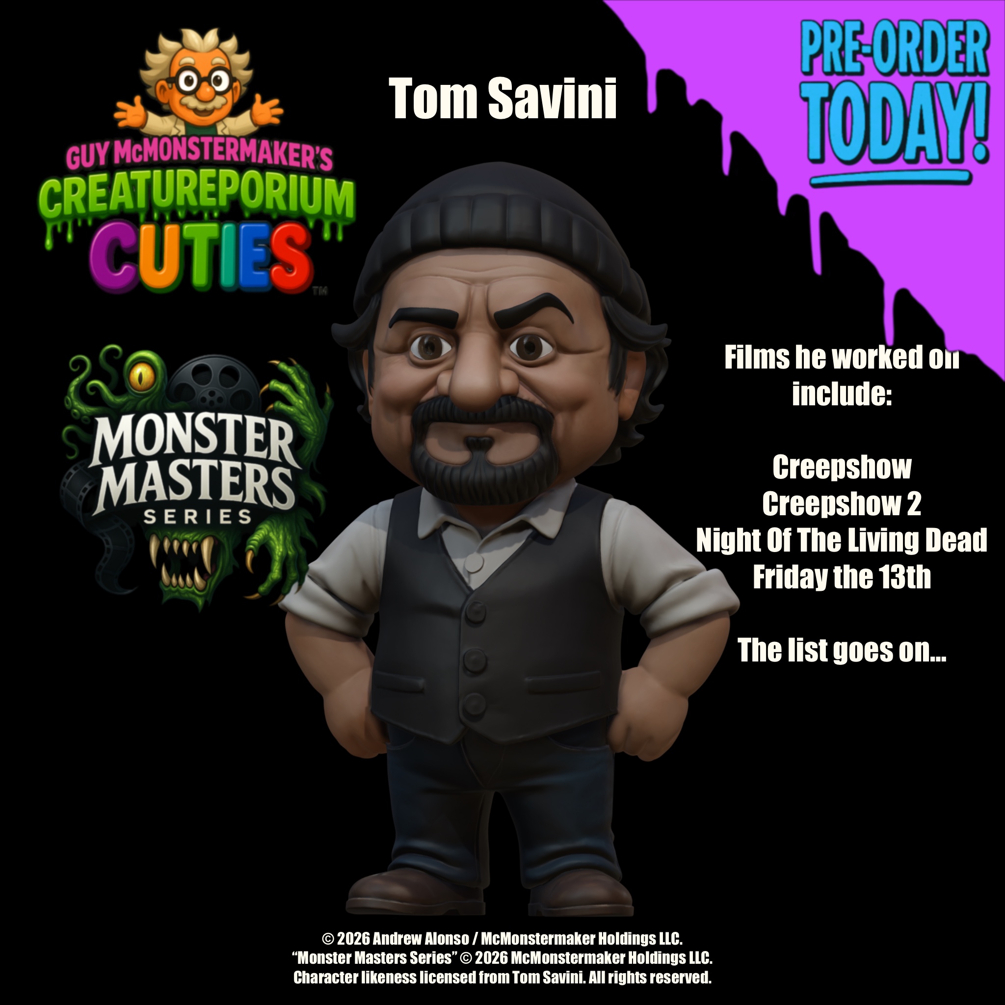 We’re incredibly proud and grateful to be able to add the legendary creature effects master ALEC GILLIS to the McMonstermaker roster of collectibles! His work includes creature effects for films like PREDATOR BADLANDS, PREY, TREMORS, PUMPKINHEAD, DEATH BECOMES HER, AVP, ALIENS, ALIEN 3, AND MUCH MORE!